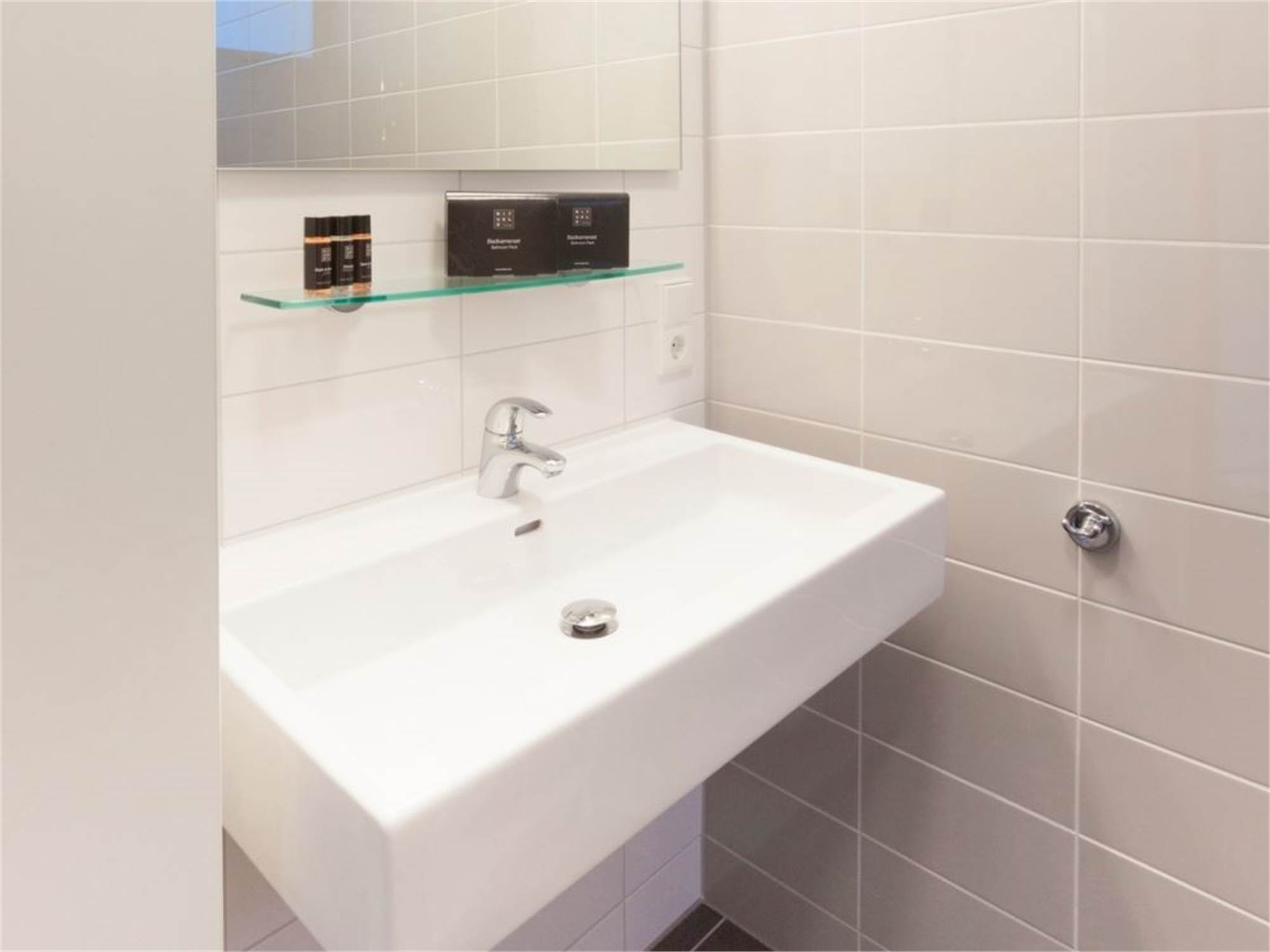 Chambre à coucher avec deux boxsprings et 1 personne et lavabo