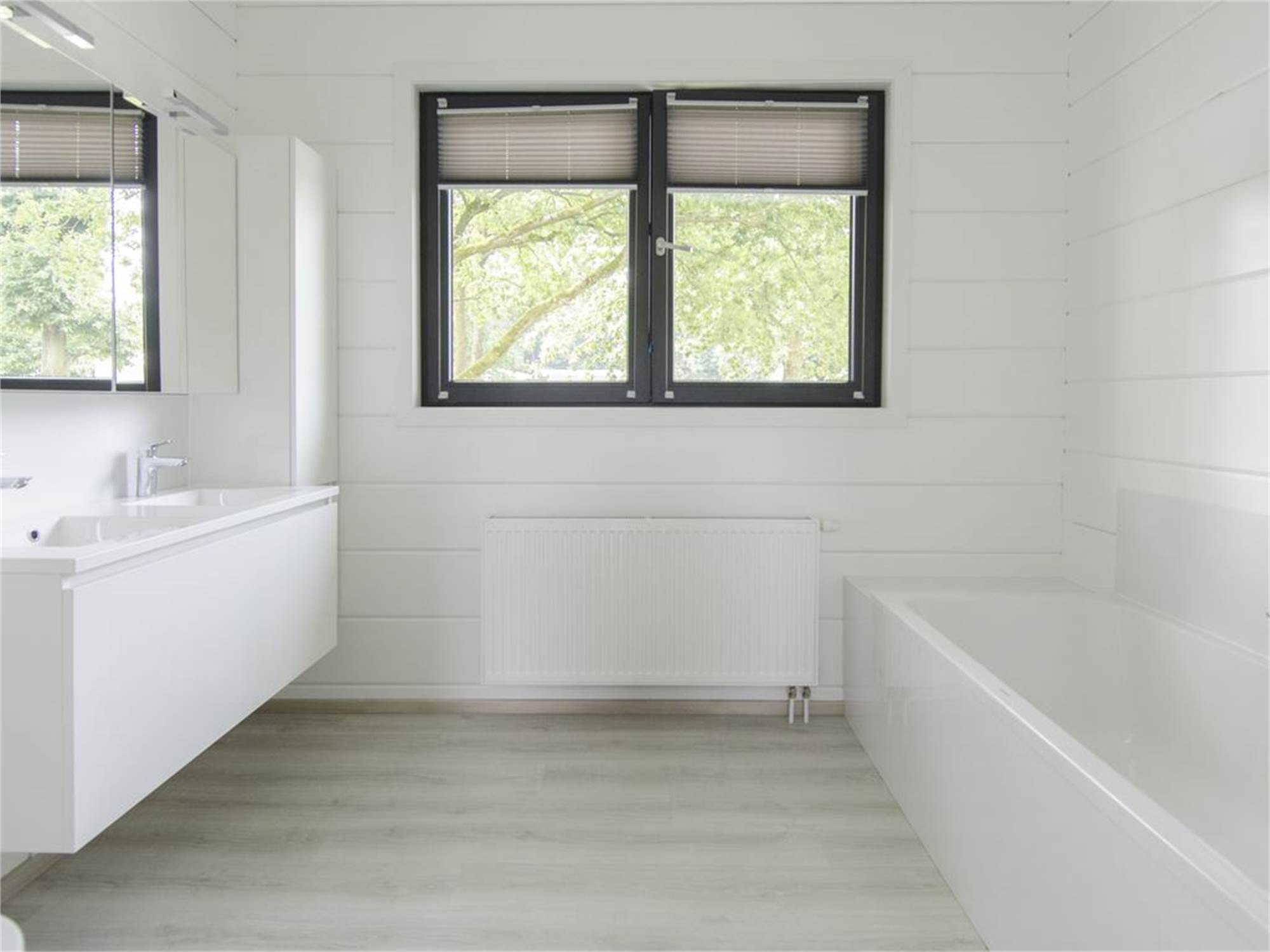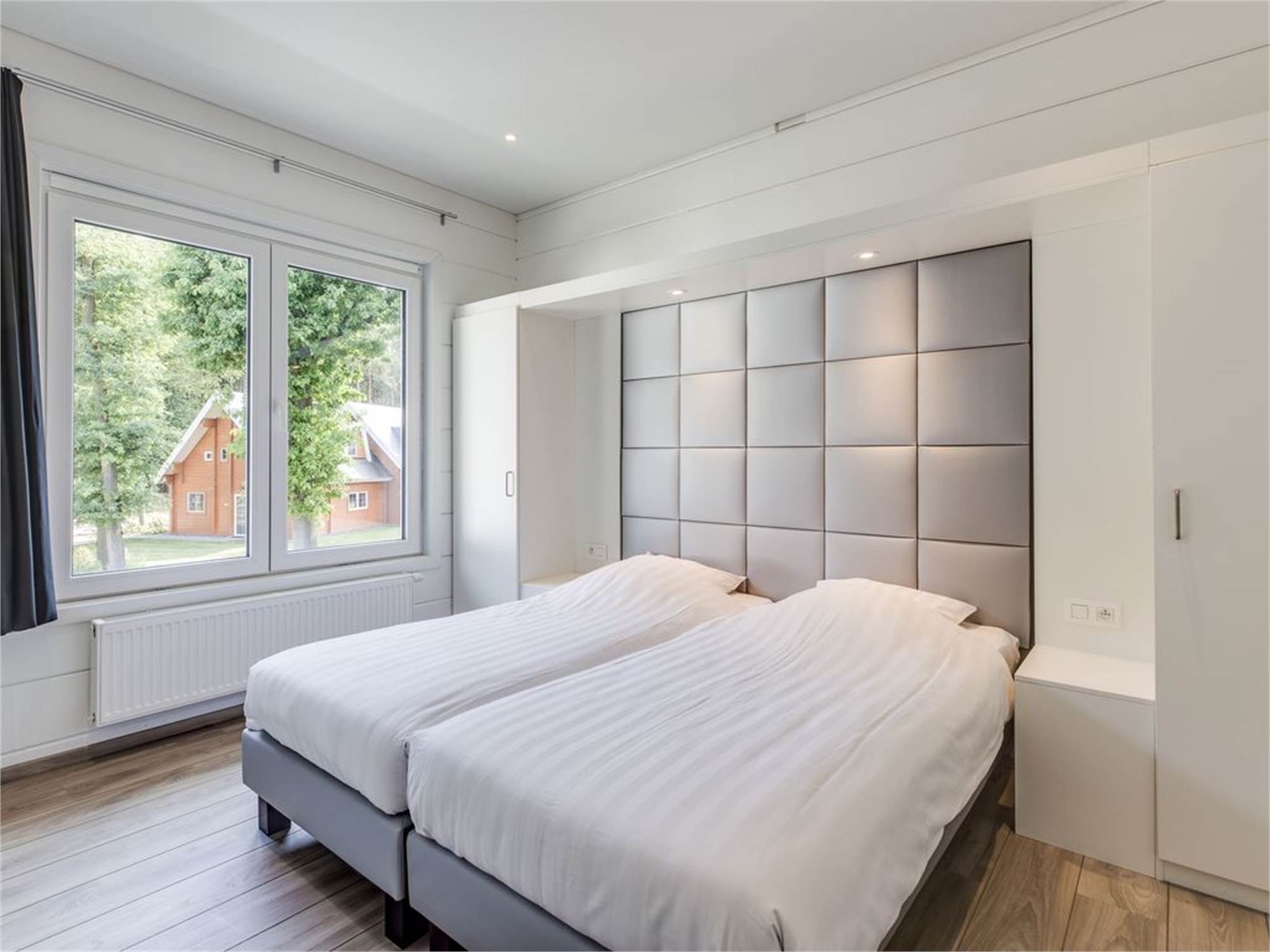 Chambre à coucher avec deux lits boxspring pour 1 personne, surmatelas pour 2 personnes et lavabo