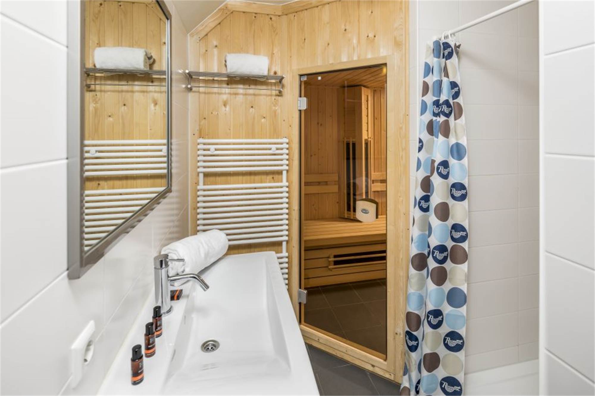 Cette luxueuse villa individuelle peut accueillir 10 personnes. Via le couloir, vous atteignez le salon lumineux avec chauffage au sol et portes françaises menant à la terrasse couverte. La villa dispose d'une cuisine entièrement équipée avec lave-vaisselle et réfrigérateur-congélateur. Il y a aussi deux toilettes séparées et un débarras à l'extérieur où vous pourrez ranger les vélos. Au rez-de-chaussée se trouve 1 chambre avec TV et une salle de bains attenante. À l'étage, vous pourrez trouver quatre chambres et trois salles de bains, dont une avec douche, une avec douche et sauna infrarouge et une avec baignoire.