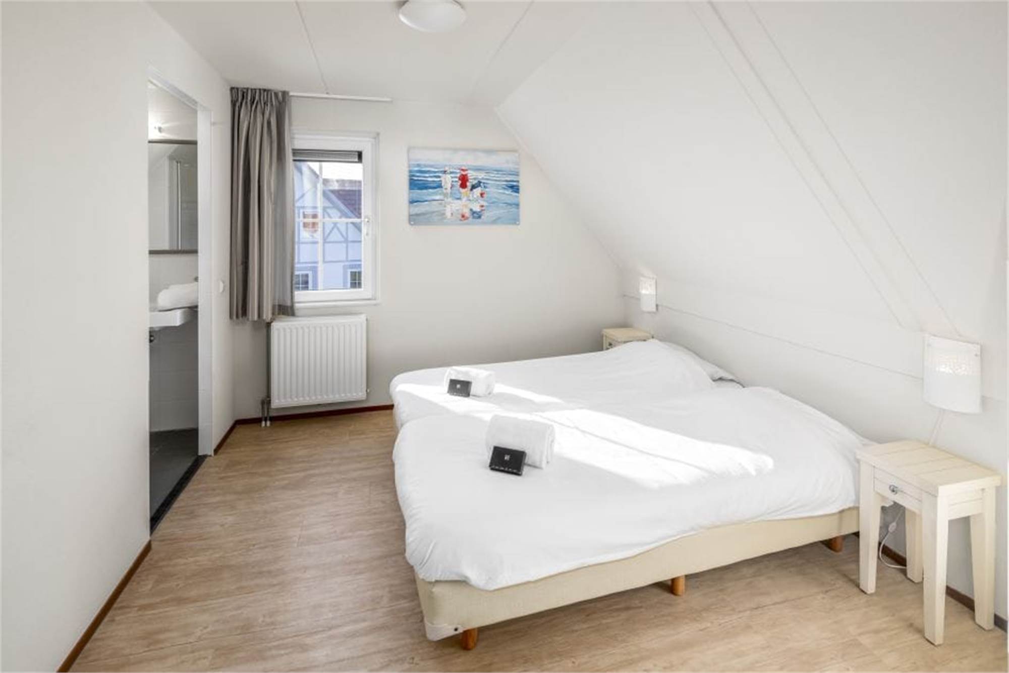 Cette villa familiale individuelle peut accueillir 16 personnes. Par le biais du hall vous entrez dans le salon lumineux avec chauffage au sol et portes françaises donnant sur la terrasse couverte. Il y a une cuisine entièrement équipée avec lave-vaisselle, micro-ondes combiné et un réfrigérateur / congélateur, un WC au rez-de-chaussée, un débarras, ainsi que deux chambres luxueuses avec une salle de bains avec douche et toilettes. Au premier étage se trouvent cinq chambres, une salle de bains avec douche, une salle de bains avec douche et sauna infrarouge, une salle de bains avec baignoire et deux toilettes séparées. Si vous apporter vos vélos en vacances, vous pouvez les stocker dans la remise extérieure.