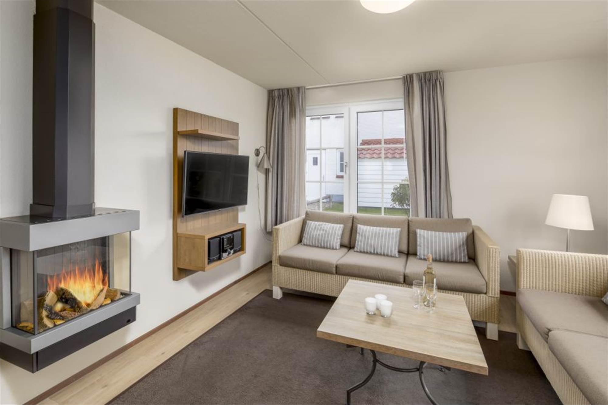 Cette luxueuse villa individuelle peut accueillir 6 personnes. Via le couloir, vous atteignez le salon lumineux avec chauffage au sol et portes françaises menant à la terrasse chauffée. La villa dispose d'une cuisine entièrement équipée avec lave-vaisselle, micro-ondes combiné et réfrigérateur-congélateur. Il y a aussi deux toilettes séparées et un débarras à l'extérieur où vous pourrez ranger les vélos. Au rez-de-chaussée se trouve 1 chambre avec TV et une salle de bains attenante. À l'étage, vous pourrez trouver deux chambres et deux salles de bains avec douche.