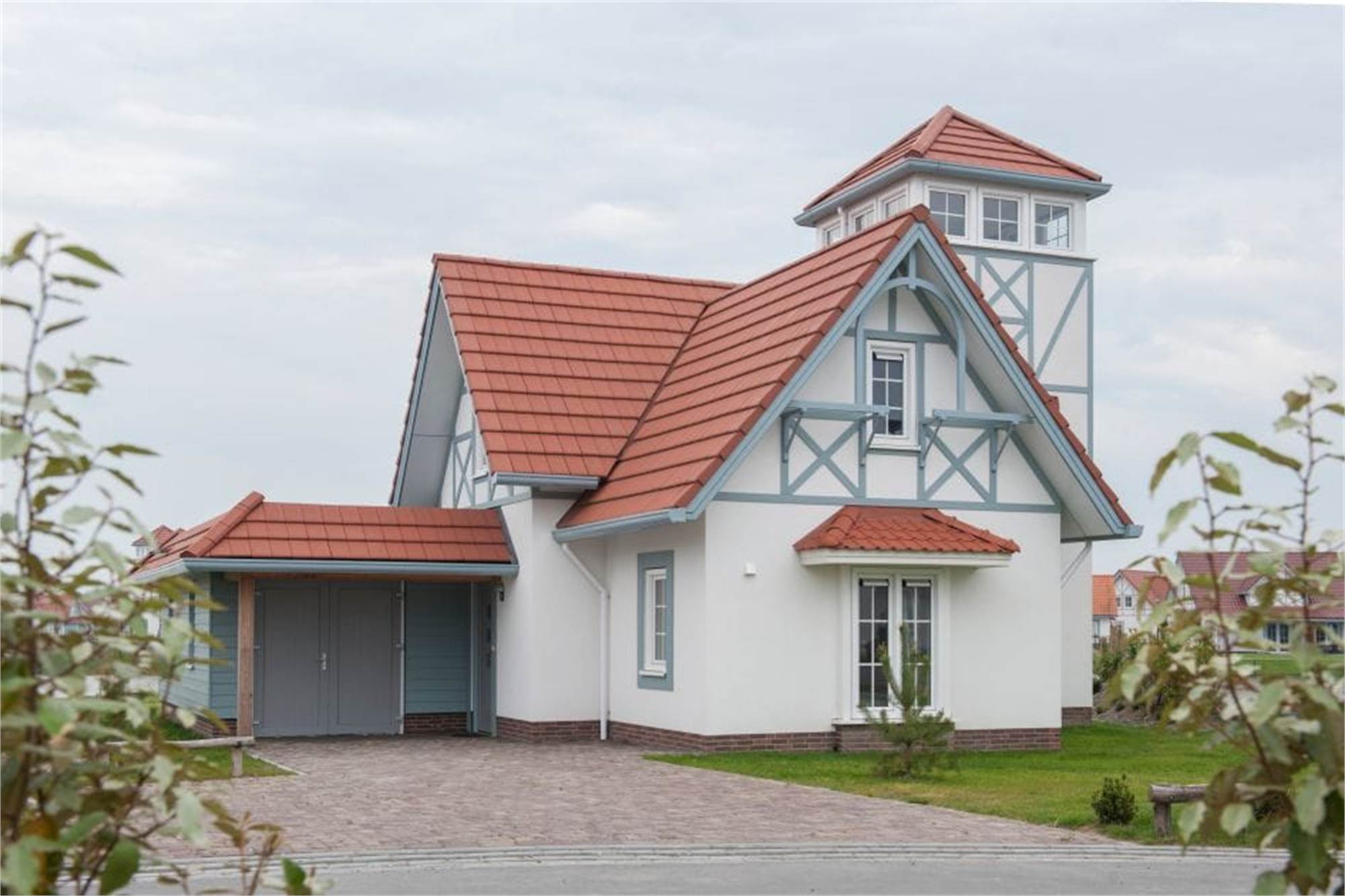 Cette luxueuse villa individuelle est adaptée pour 9 personnes. Par le biais du hall vous entrez dans le salon lumineux avec chauffage au sol et portes françaises donnant sur la terrasse couverte. Il y a une cuisine entièrement équipée avec lave-vaisselle, micro-ondes combiné et un réfrigérateur / congélateur, des toilettes au rez-de-chaussée, un débarras et une chambre avec TV et salle de bains attenante. Il y a trois chambres à l'étage, une salle de bains avec douche et sauna et des toilettes séparées. Cet hébergement est spécial parce qu’il est pourvu d’une chambre dans la tour avec un lit simple. Si vous apporter vos vélos en vacances, vous pouvez les stocker dans la remise extérieure. L'Accès au Wifi est gratuit.