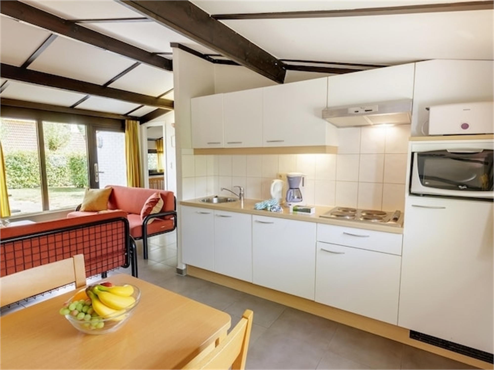Cuisine entièrement équipéeRéfrigérateurMachine à café filtreGrille-painBouilloire électriqueChaise hautePlaque de cuissonMicro-onde A l'extérieur