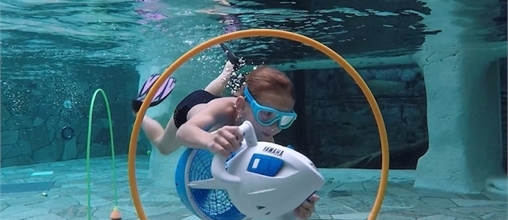Laissez-vous entraîner par un véritable scooter sous-marin et découvrez avec plaisir et facilité tous les recoins du parcours sous-marin Cool Factor.