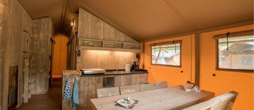 Un mélange de glamour et de camping: dans cette tente de luxe, vous vous détendez en pleine nature pour un séjour authentique.