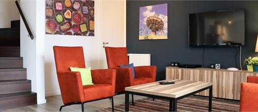Cet appartement spacieux en duplex peut accueillir 8 personnes. Au rez-de-chaussée, vous trouverez une salle de séjour moderne avec un coin salon confortable. La cuisine dispose d'une grande table à manger et est équipée, entre autres, d'un lave-vaisselle, un micro-ondes et un four. De plus, il y a 2 chambres au rez-de-chaussée, toutes deux meublées de 2 lits simples avec sommiers à ressorts. L'une des chambres est équipée d'une télévision. Il y a aussi une salle de bains au rez-de-chaussée avec douche et toilettes. À l'étage, vous trouverez la troisième chambre, qui est équipée de 4 lits simples avec sommiers à ressorts. L'appartement dispose également de 2 balcons et l'utilisation du Wifi est gratuite. Vous pourrez profiter d'une place de parking est mise à votre appartement.