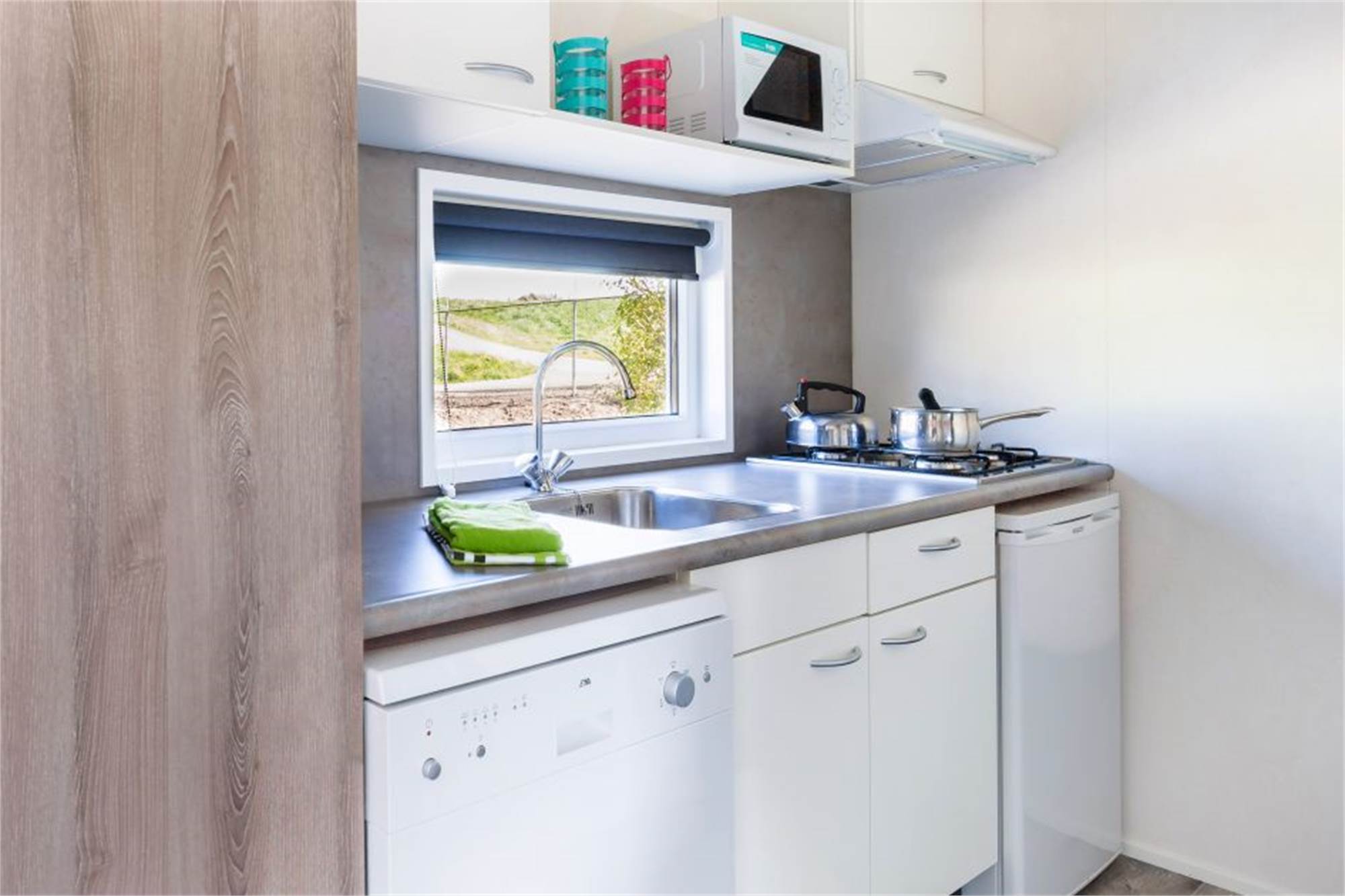 Ce chalet peut accueillir 4 personnes. Il y a une salle de séjour avec télévision et une cuisine équipée, entre autres,l d’un micro-ondes. Le chalet compte 2 chambres à coucher, dont une avec un lit de deux personnes et une avec 2 lits d'une personne. Vous trouverez aussi une salle de bain avec douche et W.-C. La terrasse est équipée de mobilier de jardin. L'accès au Wi-Fi est gratuit.