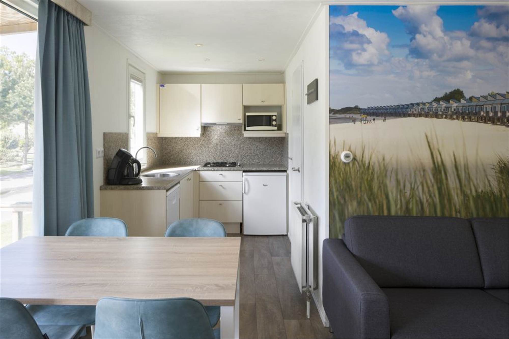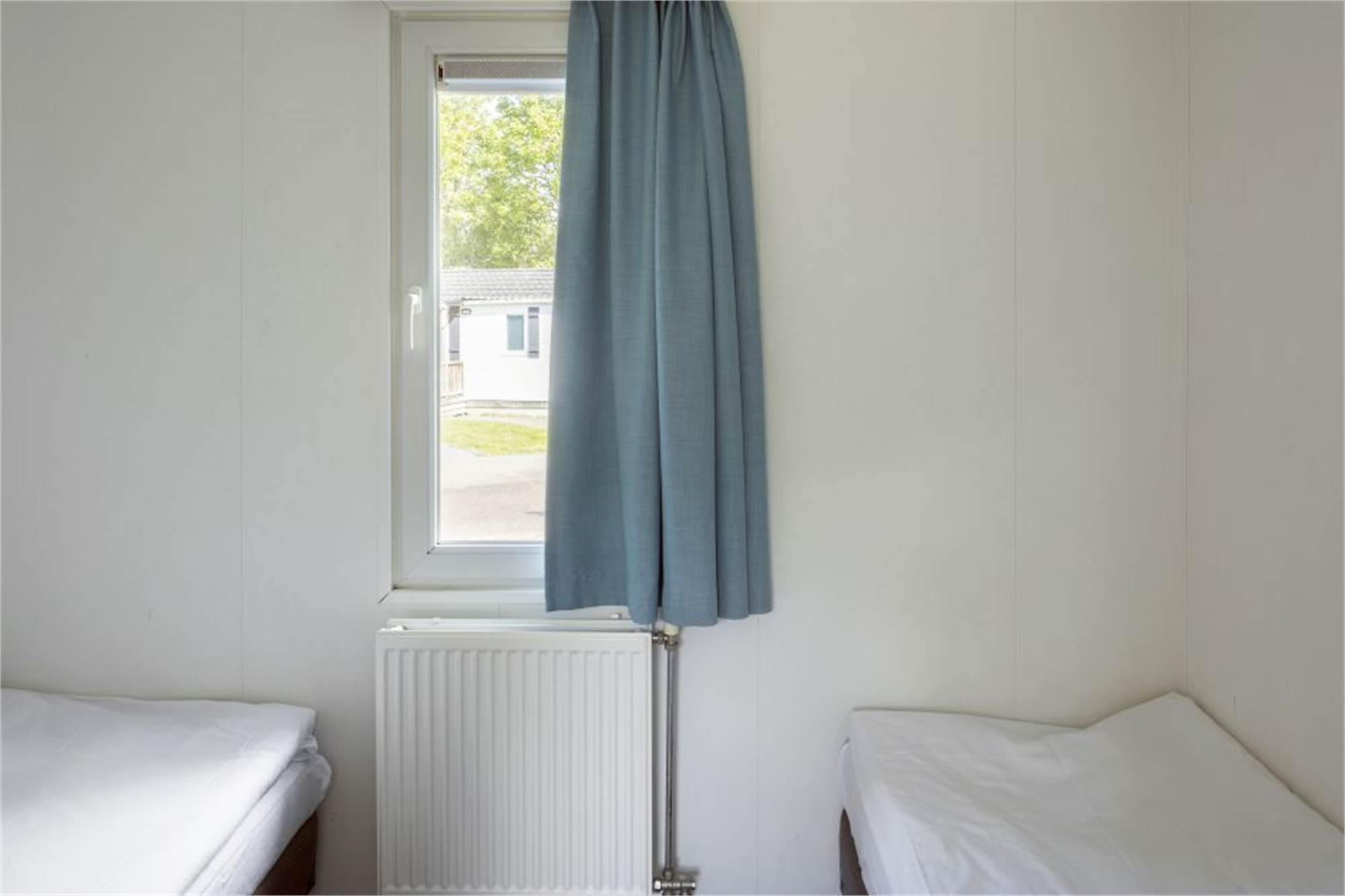 Ce chalet indépendant est adapté pour 4 personnes. Le chalet dispose d'une cuisine équipée d'un lave-vaisselle, d'un réfrigérateur avec compartiment de congélation et d'un four micro-ondes combiné ainsi que d’une salle de bains et de 2 chambres avec chacune 2 lits simples. Le mobilier de jardin est disponible dans la véranda. Vous pourrez profiter d’une connexion Wifi gratuite.