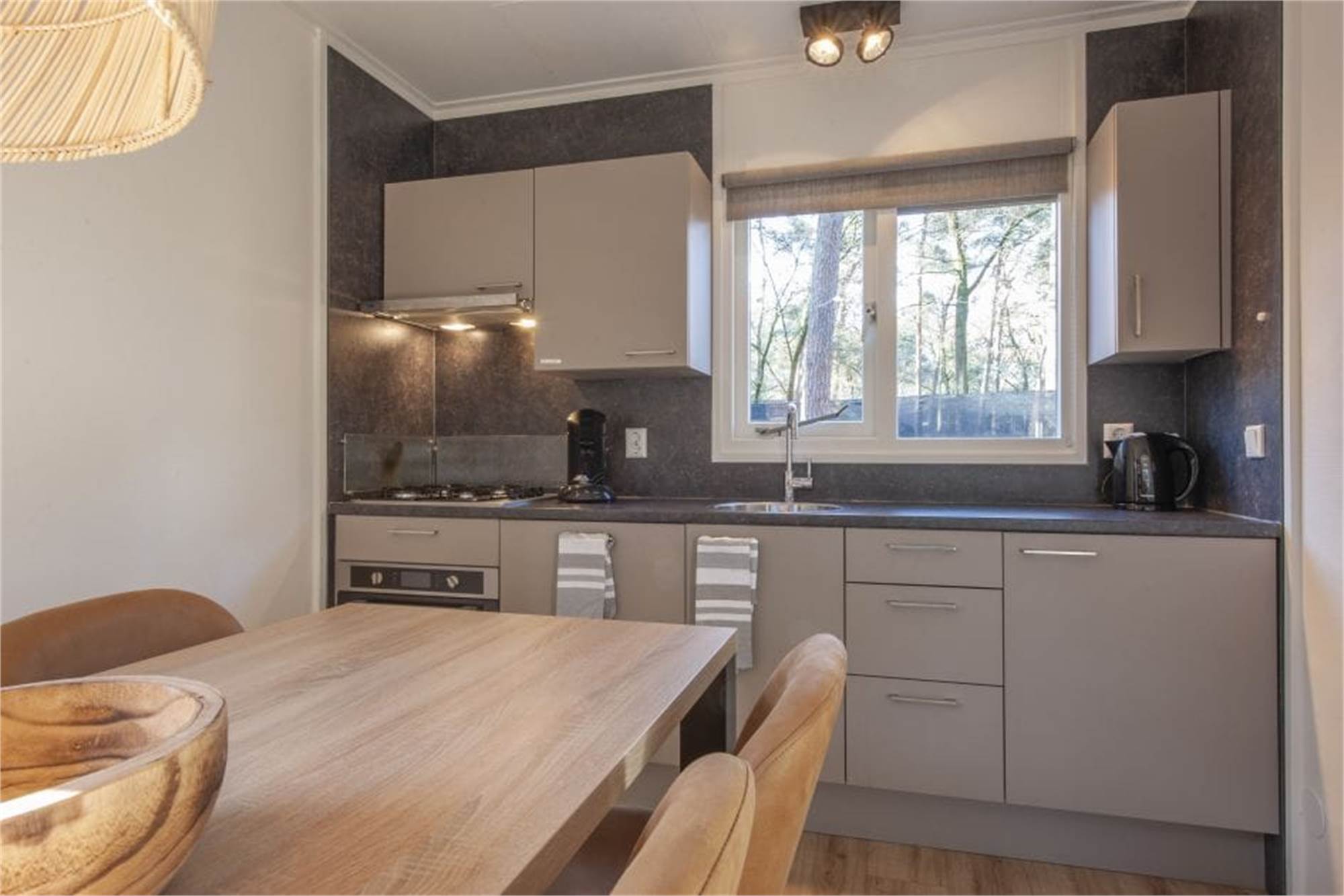 Plus pratique : les prises murales sont blindées dans ce bungalow. Il y a aussi une chaise haute.