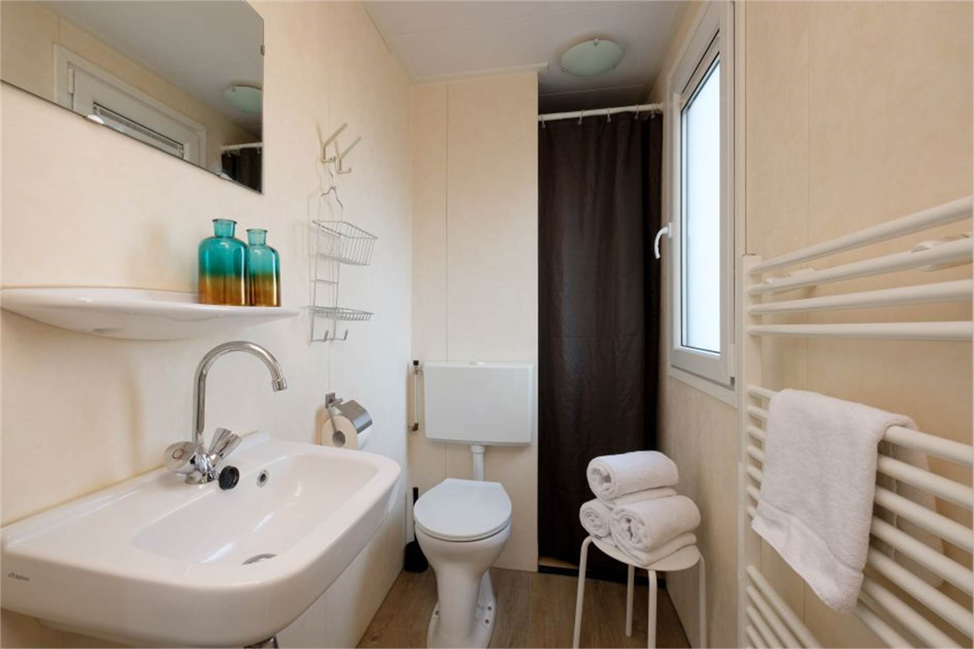 Ce chalet pour 4 personnes est situé près de la plage. Cette maison de plain-pied est équipée d’un coin salon agréable et dans la cuisine vous trouverez entre autres un réfrigérateur-congélateur et un micro-ondes combiné. Le chalet a 2 chambres, dont 1 avec lits superposés pour 2 personnes. Dans l’autre chambre vous trouverez un lit double. La salle de bain est équipée d’une douche et d’une toilette. Il y a des meubles de jardin et l’usage de Wifi est gratuit.