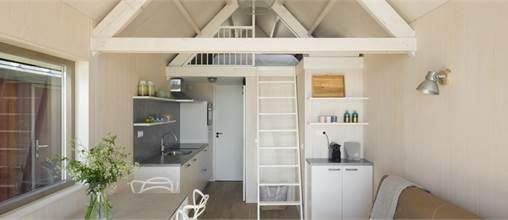 Ce lodge indépendant est adaptée à 4 personnes et un enfant (jusqu'au 12 ans). La salle de séjour est adjacente à la cuisine ouverte, qui dispose notamment d'un lave-vaisselle, d'une machine à café à capsules, d'un micro-ondes combiné et d'un réfrigérateur avec compartiment congélateur. La salle de séjour comporte un clic-clac pour 1 personne et un escalier menant à la mezzanine ouverte avec 2 lits simples. Il y a également une chambre à coucher séparée avec des lits superposés. La salle de bain dispose d'une douche et de toilettes. Il y a un ensemble de salon dans la véranda. Vous pouvez vous garer à proximité de l'hébergement de vacances et bénéficier d'un accès gratuit au Wifi.