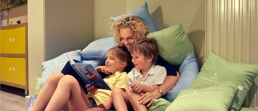 Les petits écoutent silencieusement le Conteur qui les emmène dans des aventures imaginaires. Tout tourne autour de la nature et des quatre éléments.