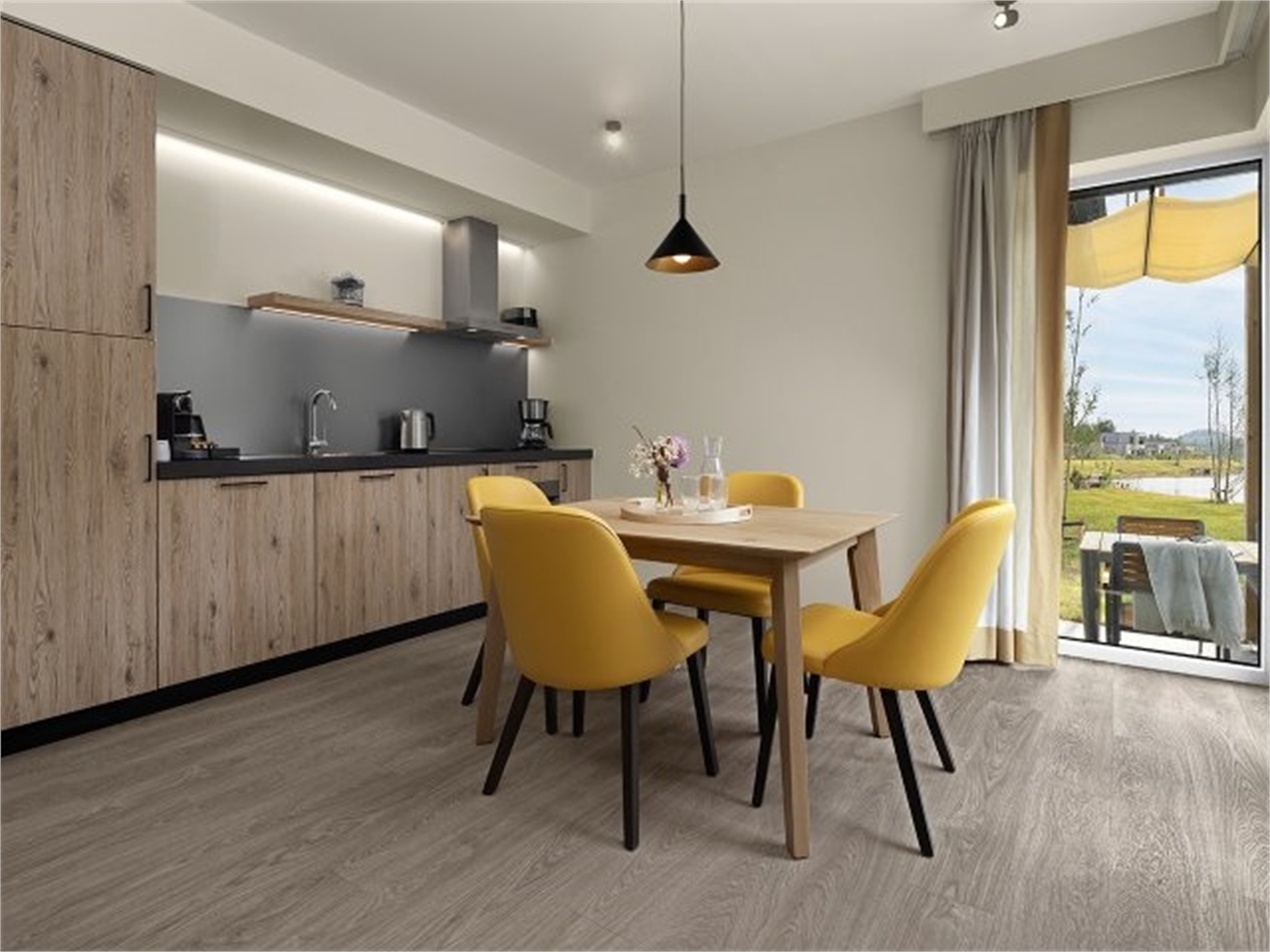 Asseyez-vous sur votre terrasse privée couverte et profitez de la vue panoramique sur le lac. Tous les cottages Lakeside sont situés au bord de l'eau. À l'intérieur aussi vous avez une belle vue, grâce aux grandes fenêtres !