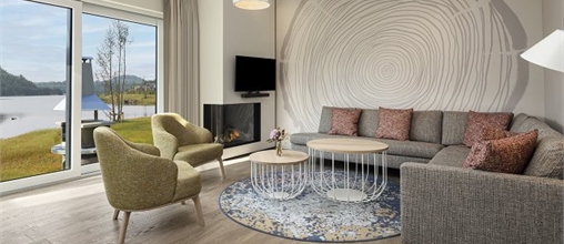 Asseyez-vous sur votre terrasse privée couverte et profitez de la vue panoramique sur le lac. Tous les cottages Lakeside sont situés au bord de l'eau. À l'intérieur aussi vous avez une belle vue, grâce aux grandes fenêtres !