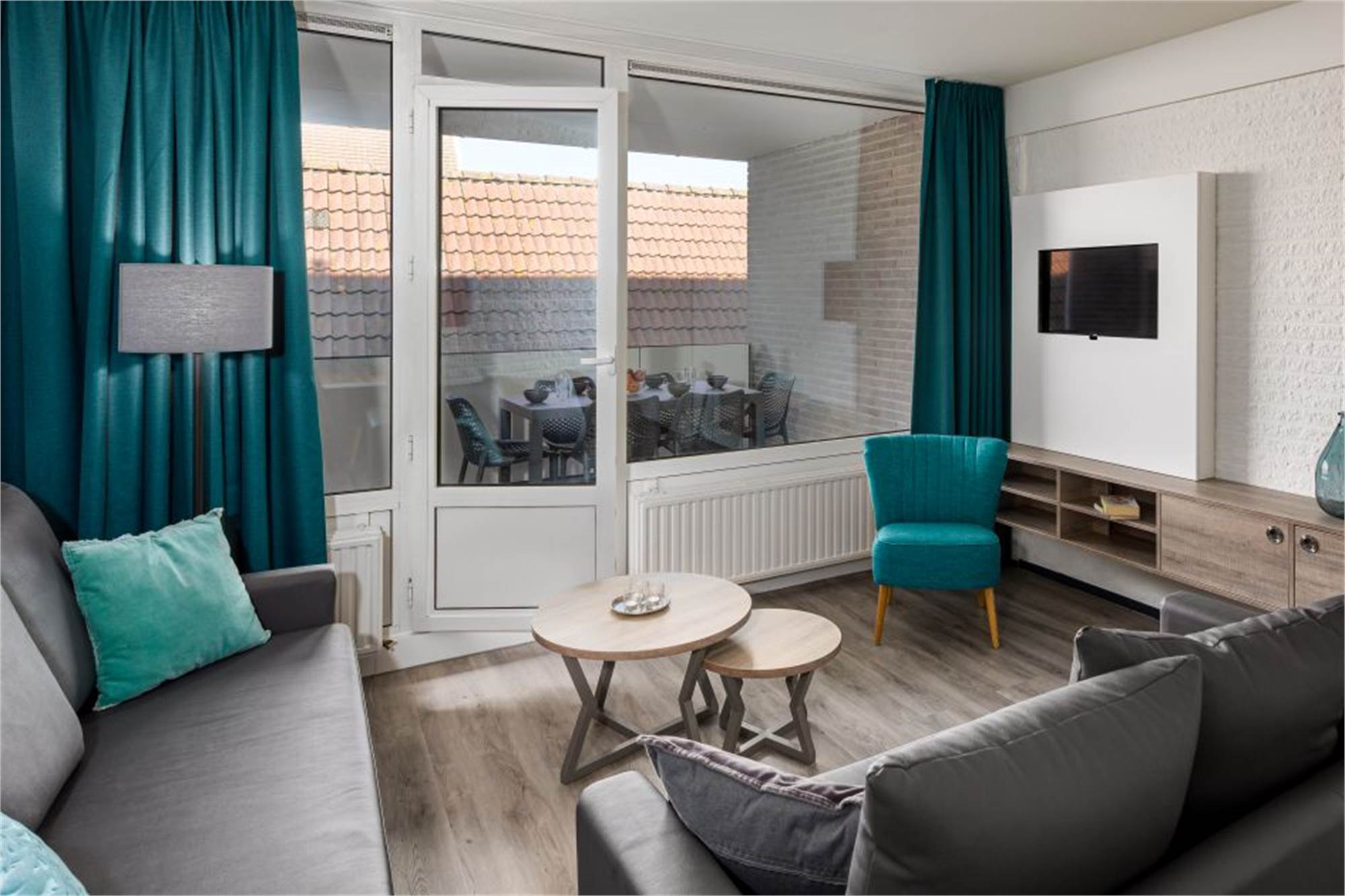 Cet appartement de plain-pied peut accueillir 6 personnes. Il a été aménagé à l'aide de mobilier sur le thème du Koos. La salle de séjour est équipée d'un coin salon avec smart-TV, et la cuisine compte notamment un lave-vaisselle et micro-ondes combiné. Il y a de 3 chambres à coucher au total, dont 1 avec un lit superposé et 2 avec 2 lits simples. La salle de bains compte une douche à l’italienne et une toilette. L’appartement possède un balcon meublé. Vous pouvez garer votre voiture dans le parking central. L’accès au Wifi est gratuit.