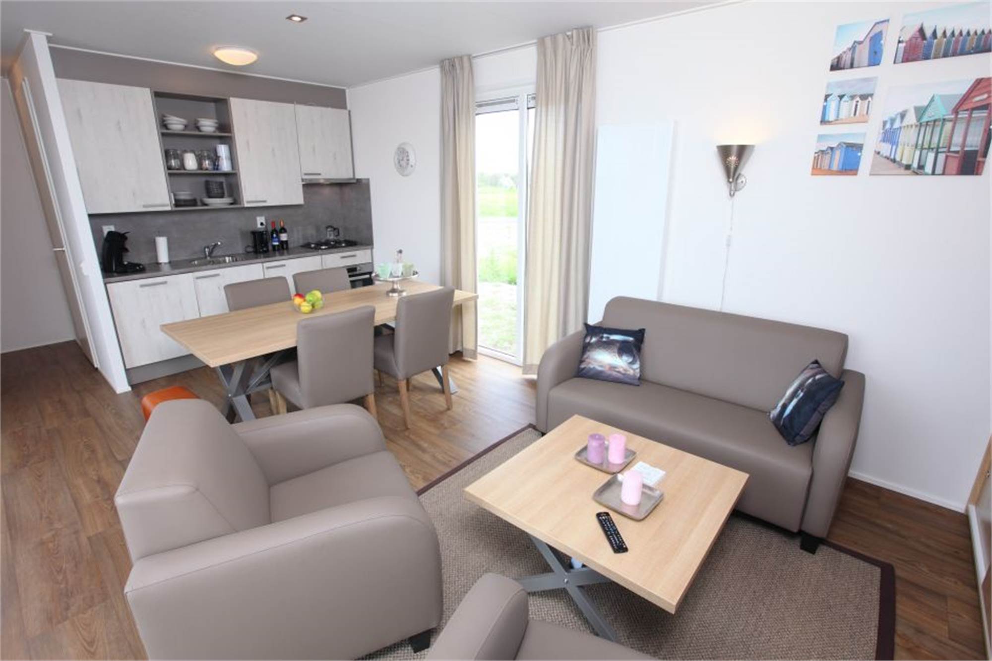 Ce lodge individuel construit de plain-pied peut accueillir 4 personnes. Dans le salon avec smart TV, vous trouverez un coin salle à manger séparé et la cuisine est équipée, entre autres, d'un lave-vaisselle, d'un micro-ondes combiné et d'une machine à café à dosettes. Il y a 2 chambres, chacune meublée de 2 lits simples et avec 2 salles de bains avec douche. Le lodge dispose également d'un jardin meublé. L'utilisation du Wifi est gratuite et le lodge dispose d'une place de stationnement pour une voiture. Certains lodges sont luxueusement équipés avec une machine à laver, un sèche-linge, une télévision dans la chambre à coucher, un ensemble de salon et des chaises longues. Ces lodges peuvent être réservés de préférence.