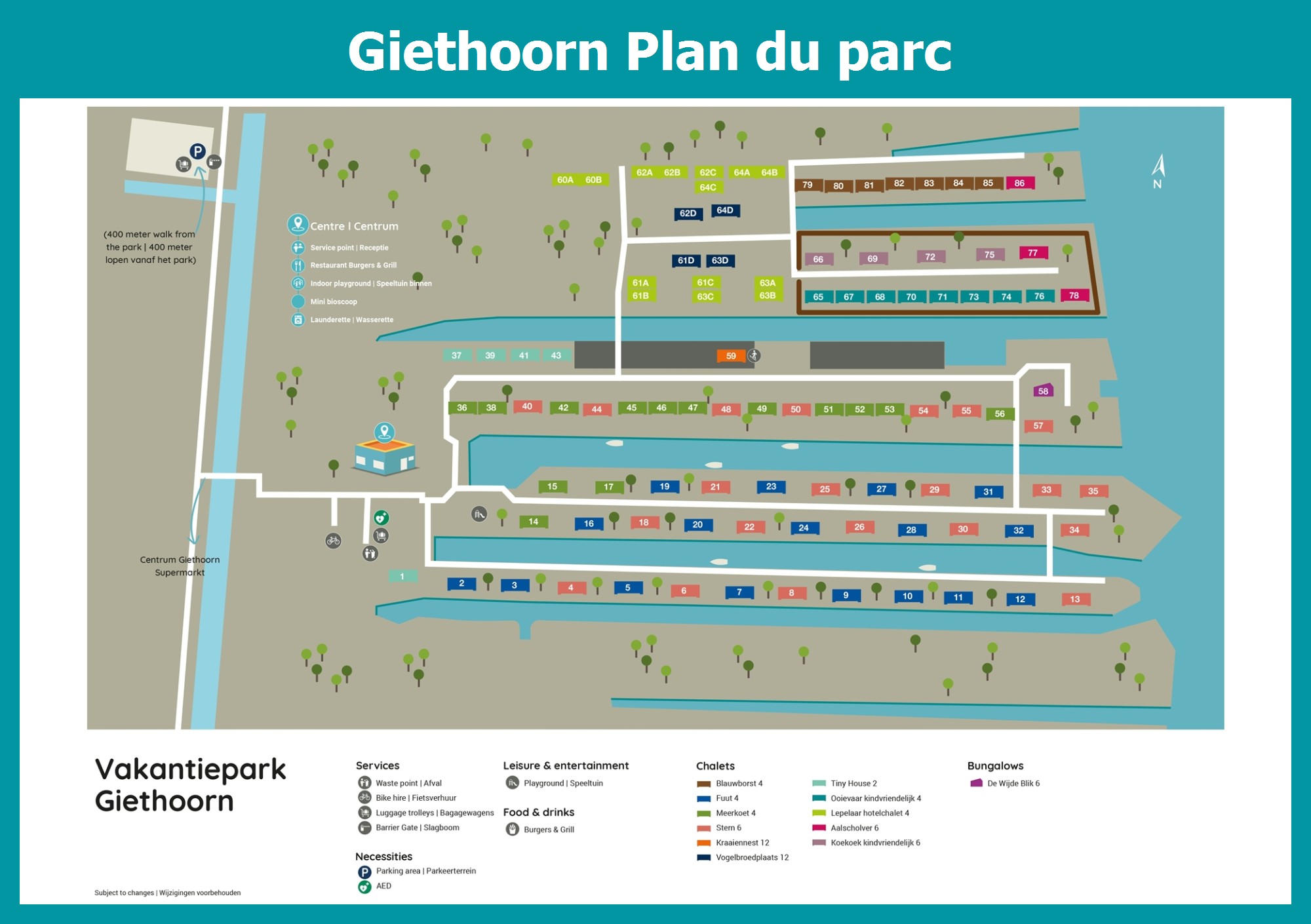 Le plan actuel du Giethoorn avec tous les hébergements et installations, est aussi disponible en pdf.