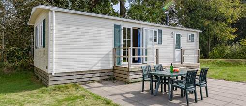 Ce chalet indépendant est adapté pour 5 personnes. Le salon a un coin repas séparé et dans la cuisine ouverte, vous trouverez, entre autres, une machine à café et un réfrigérateur avec un compartiment de congélation. En outre, il y a 3 chambres, donc 1 avec un lit simple, 1 avec 2 lits simples avec des sommiers à ressorts et 1 chambre avec un lit superposé. Il y a aussi une salle de bain avec douche et des toilettes. Le chalet est également équipé d'une terrasse et d'une terrasse meublée. Vous pourrez également profiter d’une connexion Wifi gratuite.