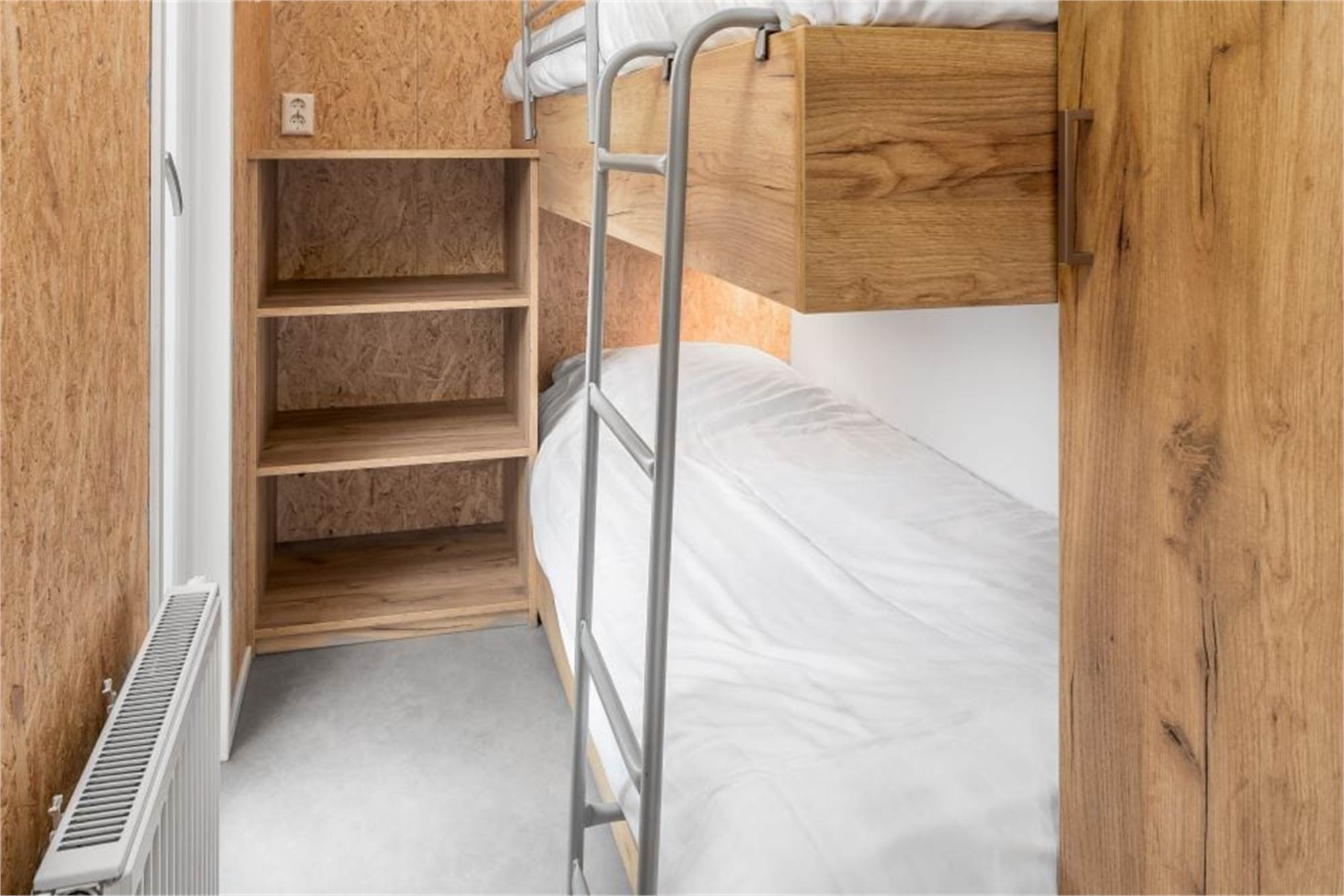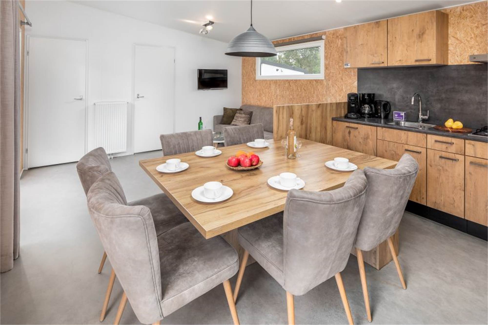 Ce chalet indépendant est adapté pour 6 personnes. Le salon dispose d'un coin repas séparé et dans la cuisine, vous trouverez un lave-vaisselle, un four micro-ondes et une machine à café. En outre, il y a 3 chambres, dont 2 avec 2 lits simples avec des sommiers à ressorts et 1 chambre avec lit superposés. Il y a aussi une salle de bains avec douche et des toilettes. Le chalet est également équipé d'une terrasse meublée et vous pourrez profiter d'une connexion Wifi gratuite.