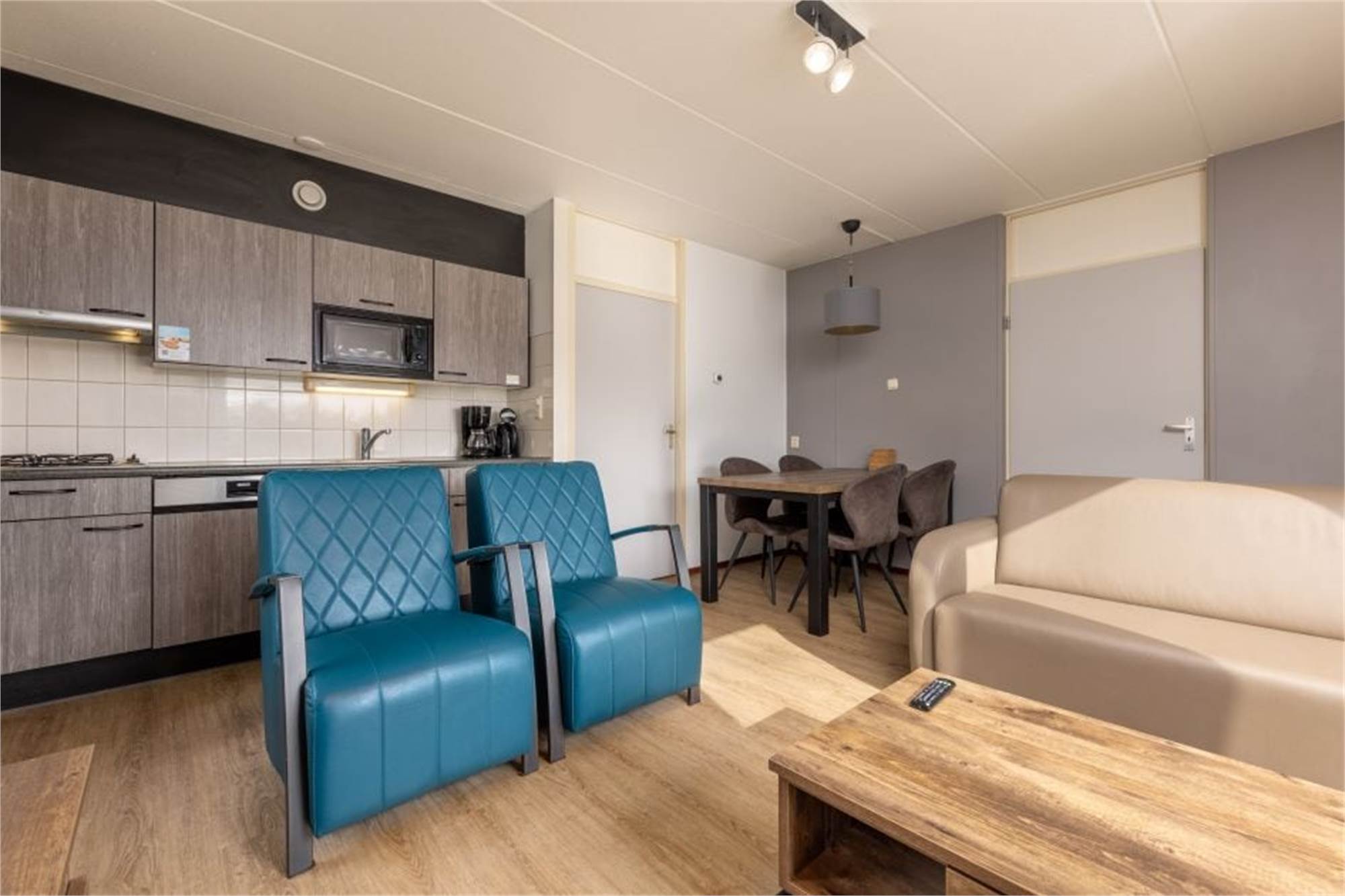 Ce bungalow de plain-pied restylé peut accueillir 4 personnes et possède une salle de séjour avec télévision et cheminée. La cuisine ouverte est notamment équipée d’un lave-vaisselle, d'un micro-ondes combiné et d'une cafetière à filtres. Il y a deux chambres à coucher, chacune munie de 2 lits d'une personne, et une salle de bains avec douche et W.-C.. Il y a aussi un W.-C. séparé. Le jardin est aménagé d'une terrasse avec mobilier. Il y a des possibilités de stationnement à proximité du bungalow. L’accès au Wifi est gratuit.