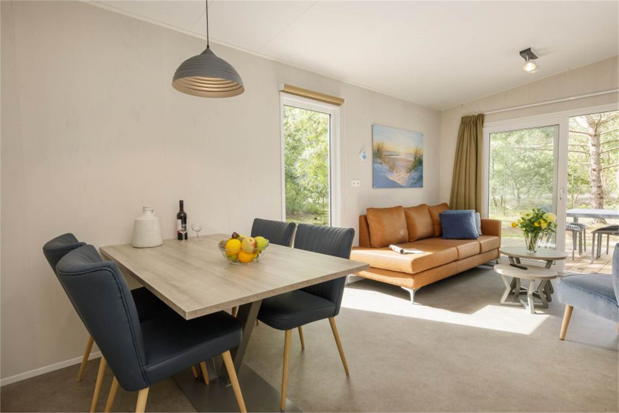 Ce nouveau chalet est situé au rez-de-chaussée et peut accueillir 4 personnes. Le salon est équipé d'une télévision intelligente et la cuisine comprend un micro-ondes, un lave-vaisselle et une cafetière. Il y a 2 chambres, les deux chambres ont 2 lits simples. Dans ce chalet se trouvent 2 salles de bain avec douche à l'italienne, les toilettes sont séparées. À l'extérieur, vous trouverez une terrasse avec des meubles de jardin.