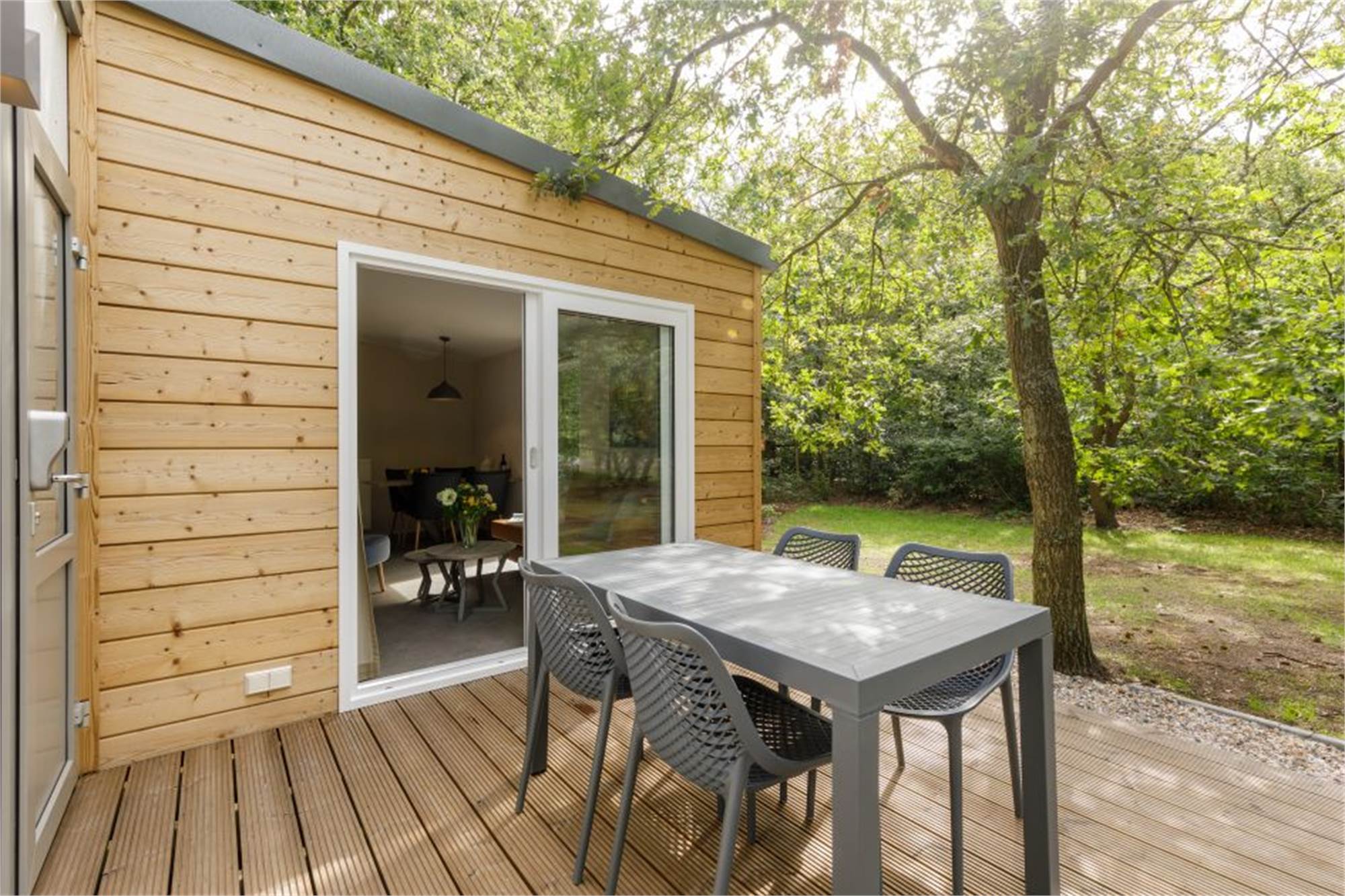 Ce nouveau chalet est de plain-pied et peut accueillir 4 personnes. La salle de séjour est équipée d’une smart-tv et la cuisine dispose notamment d’un micro-ondes combiné, d’un lave-vaisselle et d’une cafetière. Il y a 2 chambres à coucher, chacune équipée de 2 lits une personne. La salle de bains est équipée d’une douche à l’italienne et W.-C. séparé. Vous trouverez une terrasse avec mobilier de jardin. Enfin, vous disposez d’un sauna aux infrarouges.