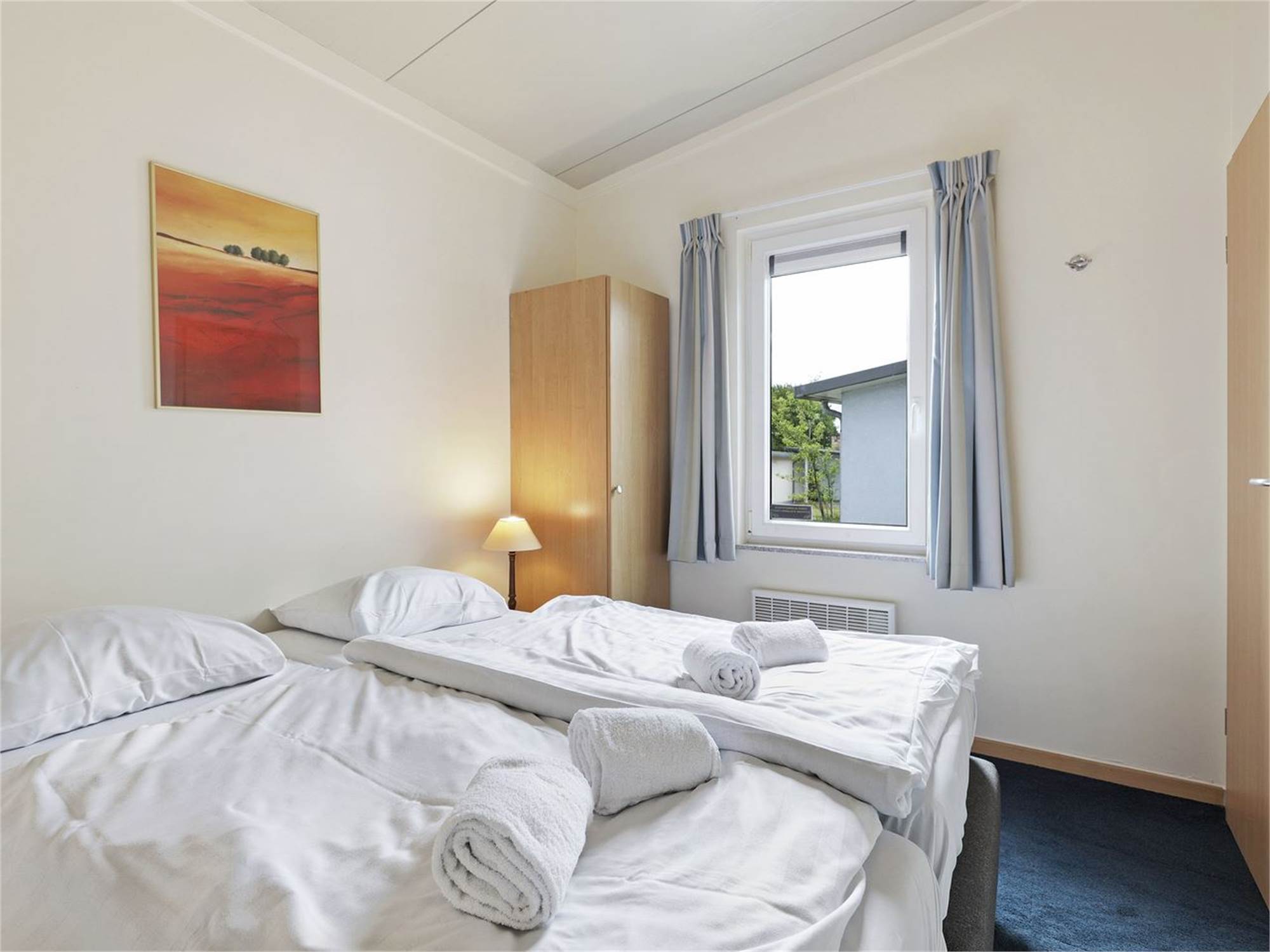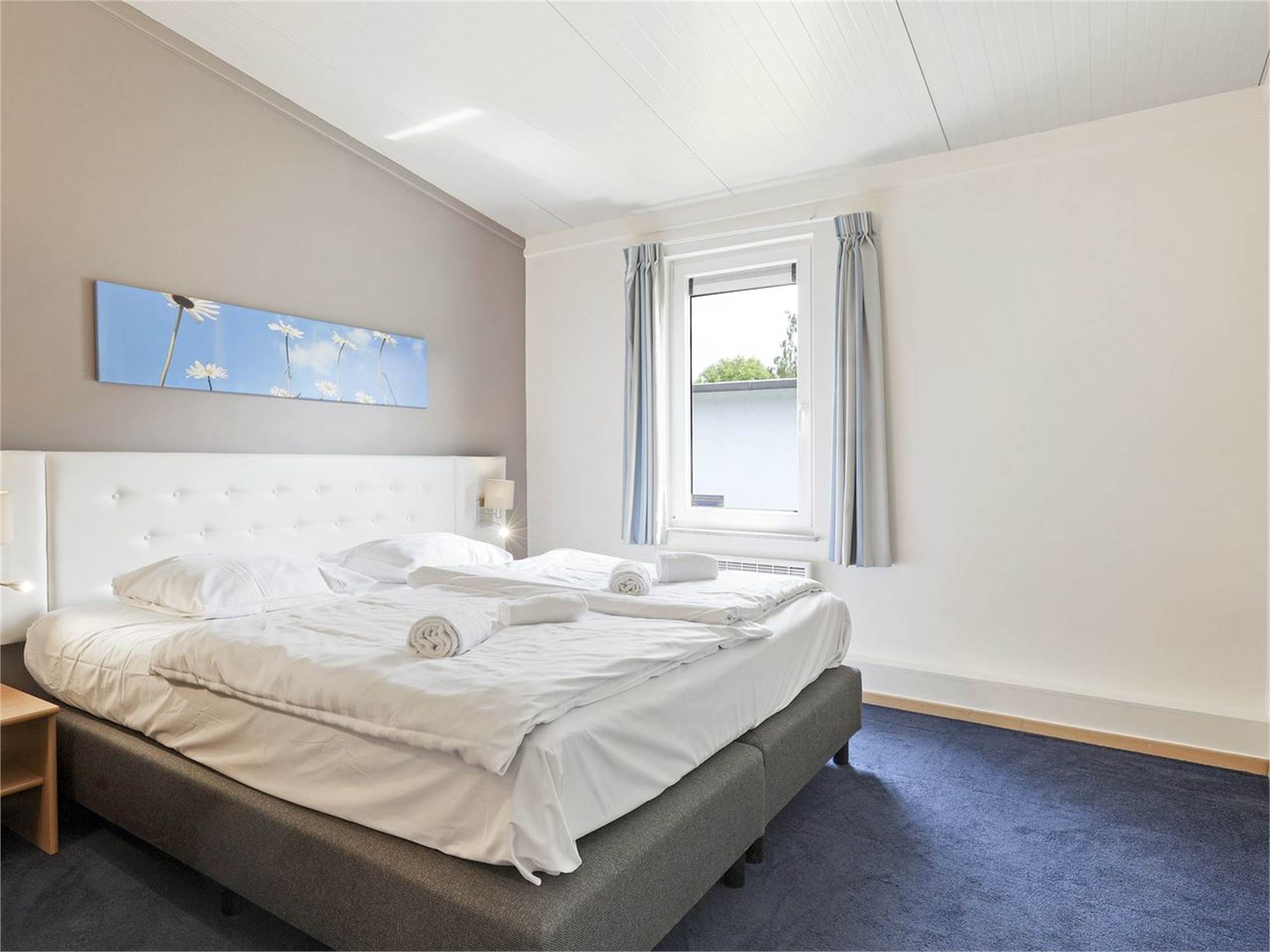 Chambre à coucher avec deux lits boxspring pour 1 personne et surmatelas
