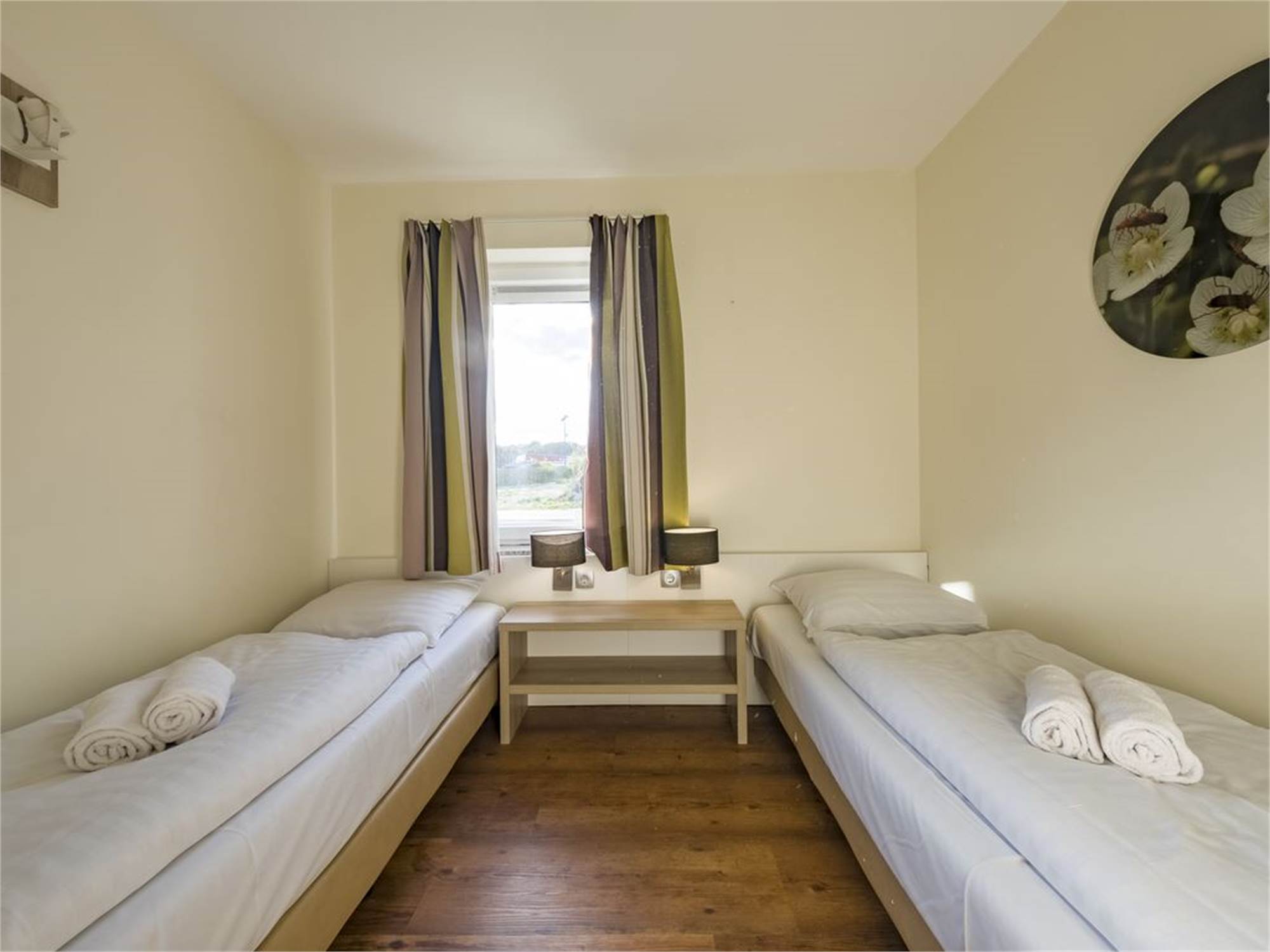 Chambre à coucher avec deux lits boxspring pour 1 personne et surmatelas