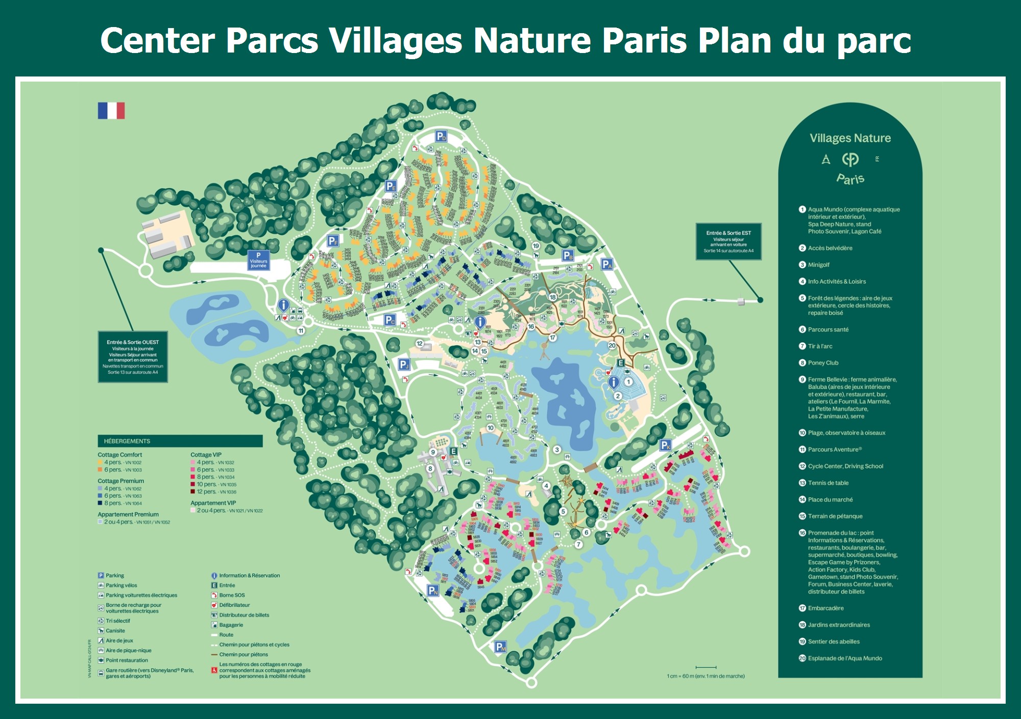 Le plan du Center Parcs Villages Nature Paris est aussi disponible en pdf.