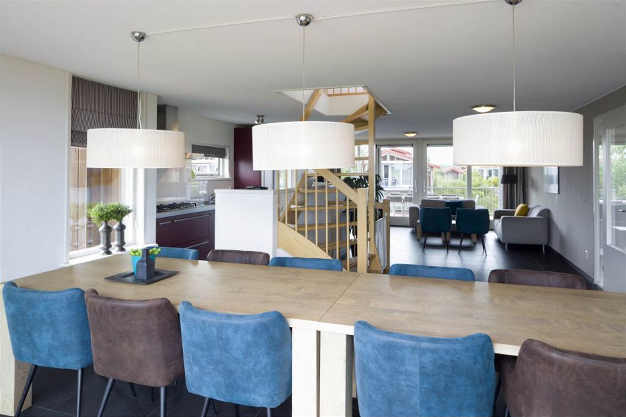 Ce logement indépendant peut accueillir jusqu'à 10 personnes. Le bungalow a plusieurs étages et se situe directement au bord de l'eau. Il a aussi un ponton privatif. Le bungalow dispose d'un jacuzzi et d'un sauna traditionnel. Il y a un balcon avec du mobilier de jardin. Dans le cellier, vous pouvez charger le vélo électrique, et il y a une place de stationnement à côté du bungalow. Il y a une machine à laver et un sèche-linge à disposition. Il y a 5 chambres à coucher en tout. 3 chambres à coucher sont au sous-sol et chacune est dotée de 2 lits simples. Il y a une salle de bain attenante, et une salle de bain séparée ainsi que des toilettes séparées. Au rez-de-chaussée, il y a encore des toilettes séparées et la salle de séjour avec téléviseur. La cuisine est notamment équipée d'un réfrigérateur avec compartiment congélateur, d'une bouilloire et d'un lave-vaisselle. À l'étage il y a encore 2 chambres à coucher, chacune avec 2 lits simples. Vous pouvez utiliser le Wifi gratuitement dans le bungalow.