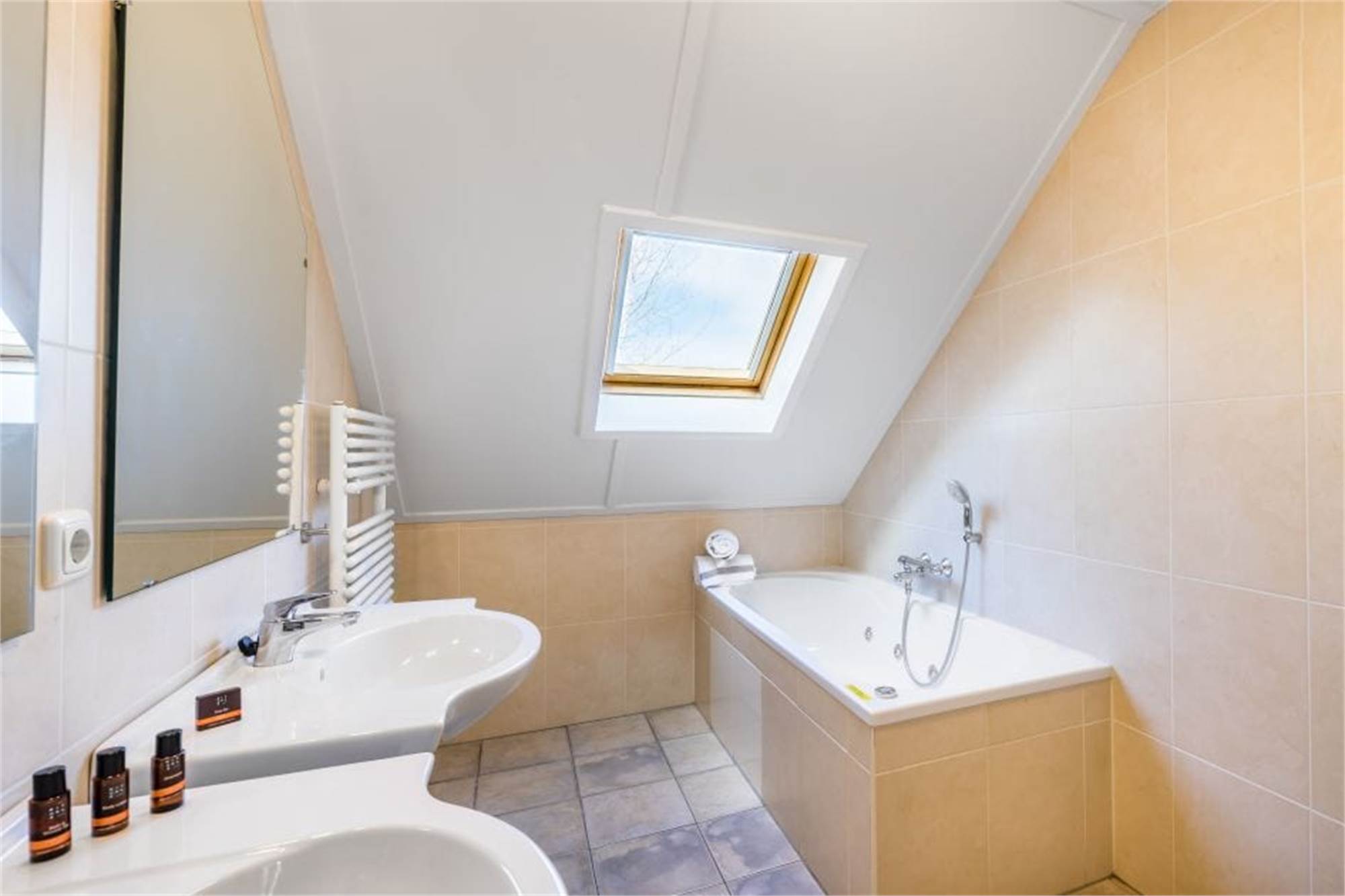 Au premier étage, vous pourrez trouver 5 chambres et 3 salles de bains, dont une avec bain à remous. Toutes les chambres ont des lits simples avec sommiers à ressorts. L’hébergement a également un sauna, de 3 toilettes, de meubles de jardin et un parking pour 2 voitures. Vous pourrez utiliser la connexion Wifi gratuitement.