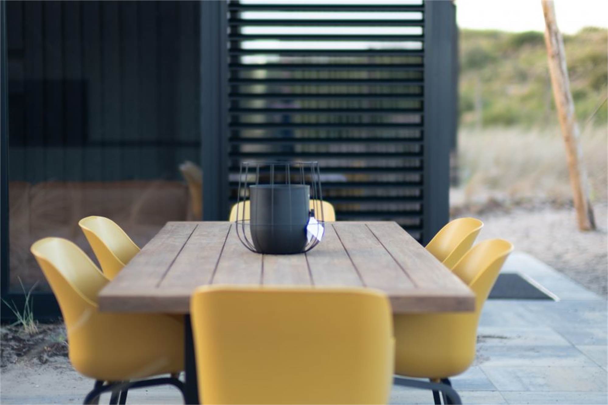 Ce lodge indépendant peut accueillir 6 personnes. La salle de séjour dispose d'un coin salon. La cuisine est équipée d'un coin repas, d'un réfrigérateur avec compartiment congélateur, d'un lave-vaisselle, d'un micro-ondes combiné, d'une machine à café et d'un robinet pour de l'eau bouillante et pétillante. Il y a 2 chambres à coucher, chacune avec 2 lits simples. Les deux chambres à coucher disposent d'une salle de bains avec toilettes, lavabo et douche à l'italienne. Vous venez à 5 ou 6 personnes ? Utilisez alors l'armoire-lits superposés. Le lodge dispose d'un jardin avec pergola, chaises longues, hamac et douche à effet de pluie.