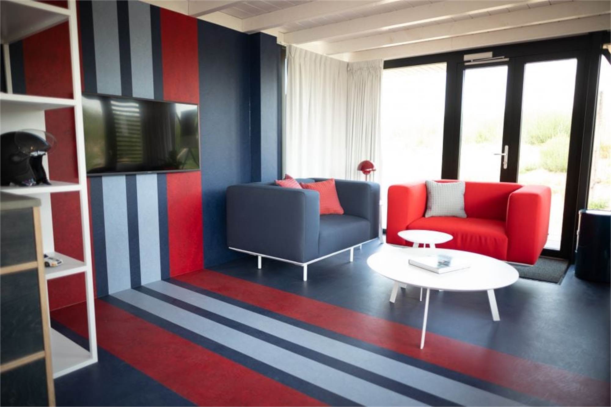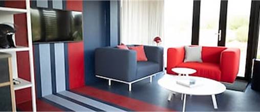 Prêt pour le départ ? Lors de votre séjour dans ce lodge Grand Prix, nous vous transportons dans le monde de la course, des pilotes et des voitures de course. Le curieux intérieur est entièrement consacré aux couleurs remarquables de Martini Striping, l'ancien sponsor principal des héros de la piste Helmut Marko et Gijs van Lennep. Ils ont gagné ensemble les 24 heures du Mans en 1971 sous le drapeau de Martini. Vous aimeriez aussi vous mettre dans la peau d'un pilote ? Défiez vos compagnons de voyage à une course sur le circuit de Formule 1, à un jet de pierre du parc, ou glissez-vous derrière le volant de l'un des simulateurs de course dans le lodge.