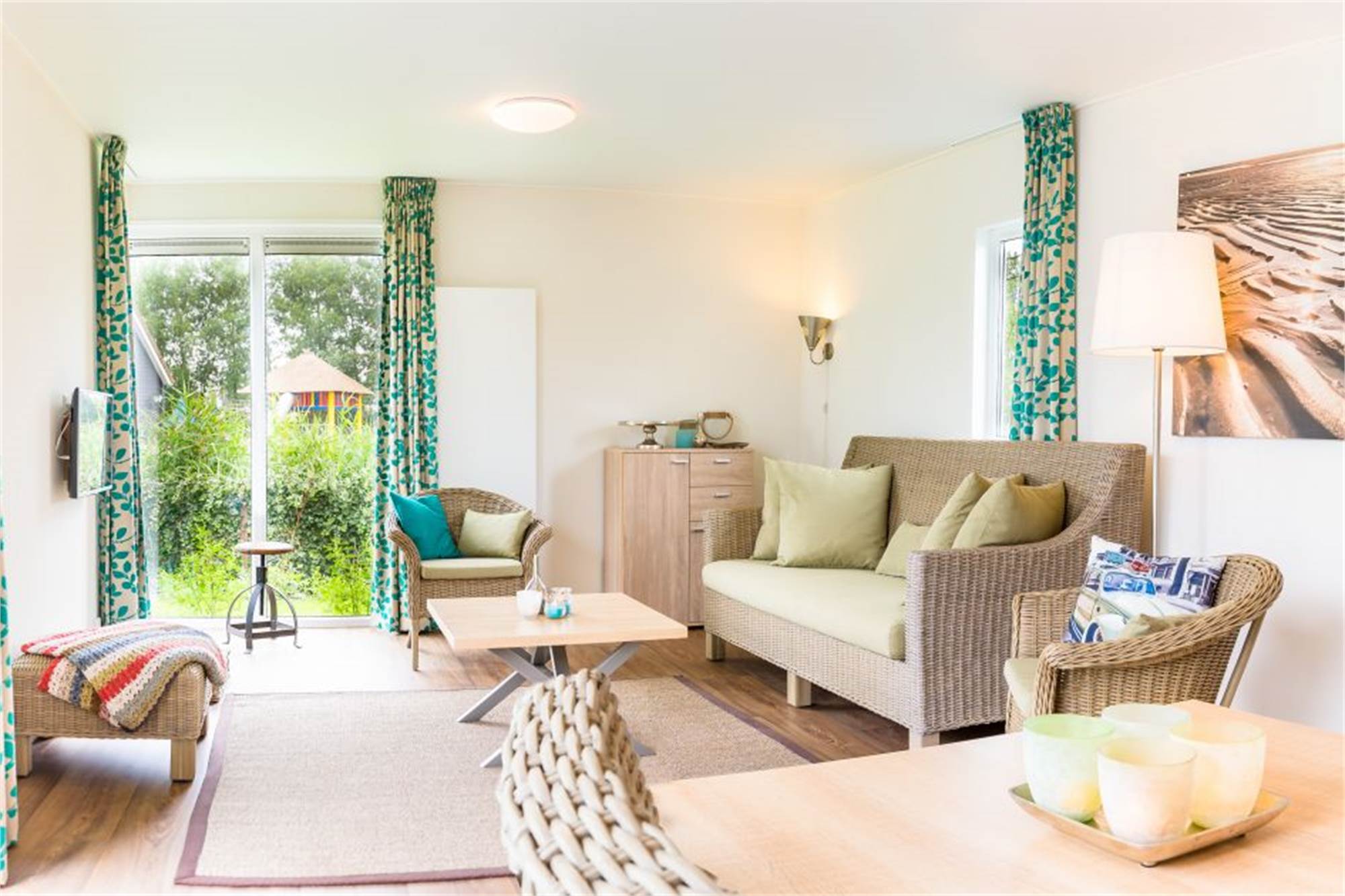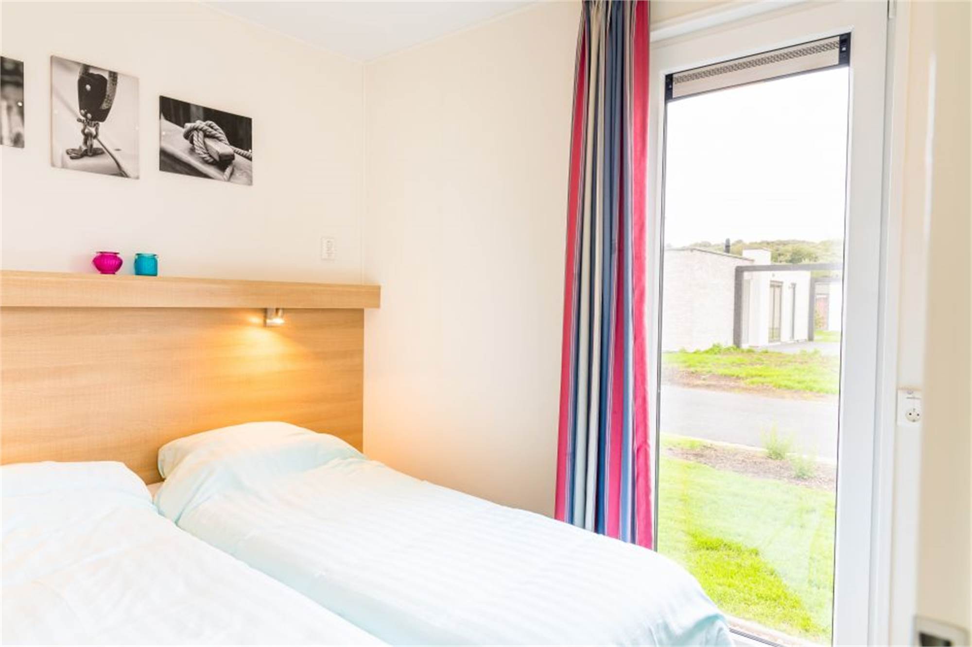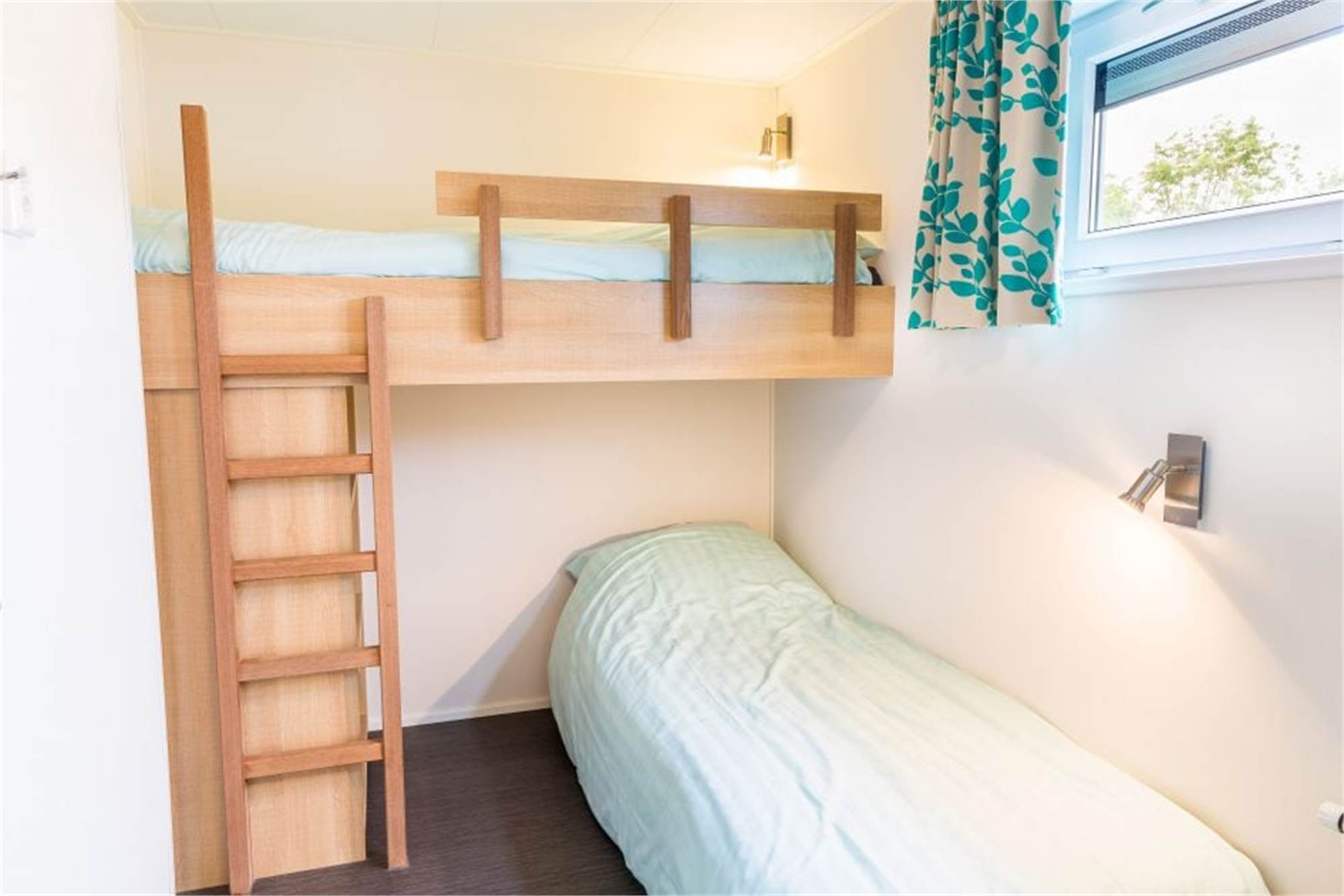 Ce lodge individuel en duplex peut accueillir 6 personnes. Dans la salle de séjour, vous trouverez un coin salon avec télévision intelligente. La cuisine est équipée, entre autres, d'un lave-vaisselle, d'un micro-ondes combiné et d'un réfrigérateur/congélateur. De plus, il y a une chambre au rez-de-chaussée avec 2 lits simples, une salle de bains et des toilettes séparées. À l'étage, vous trouverez 2 autres chambres, dont une avec un lit superposé, et une deuxième salle de bain. Le lodge dispose également d'un jardin meublé. L'utilisation du WiFi est gratuite et le lodge dispose d'une place de stationnement pour une voiture.
